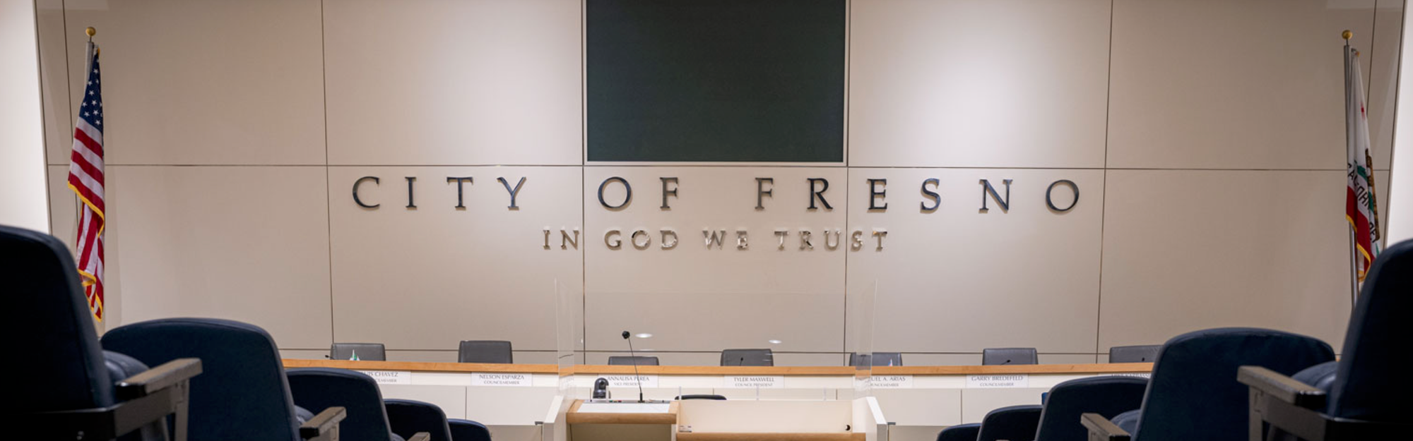 If you’ve recently attended a Fresno City Council meeting, you may have noticed the large ‘IN GOD WE TRUST’ sign displayed on the chamber wall behind council representatives. What might surprise you is that the signage was only added in 2017, following a push led by then–Councilmember Garry Bredefeld, and Pastor Jim Franklin of Cornerstone Church.