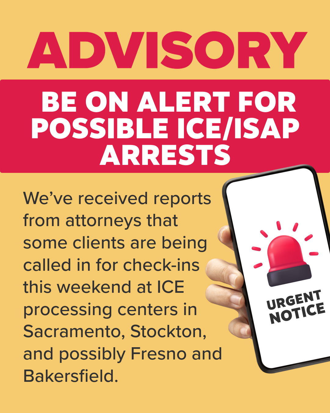 đ¨Community Advisory: Be on Alert for Possible ICE/ISAP Arrestsđ¨â