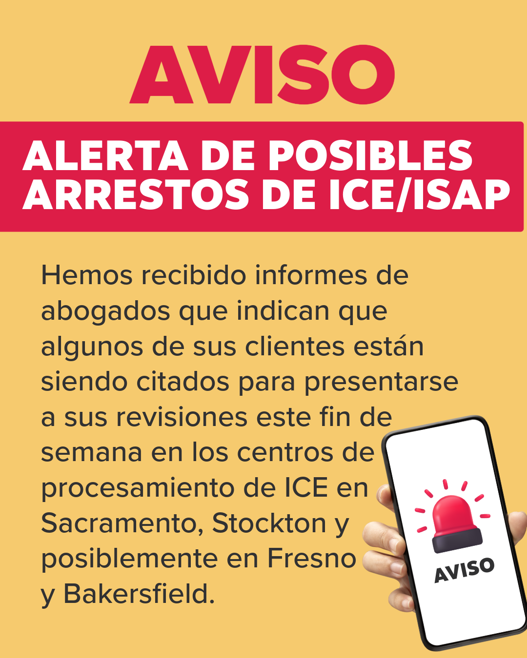 đ¨ AVISO: ALERTA DE POSIBLES ARRESTOS DE ICE/ISAP đ¨â