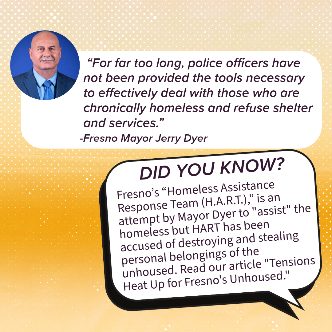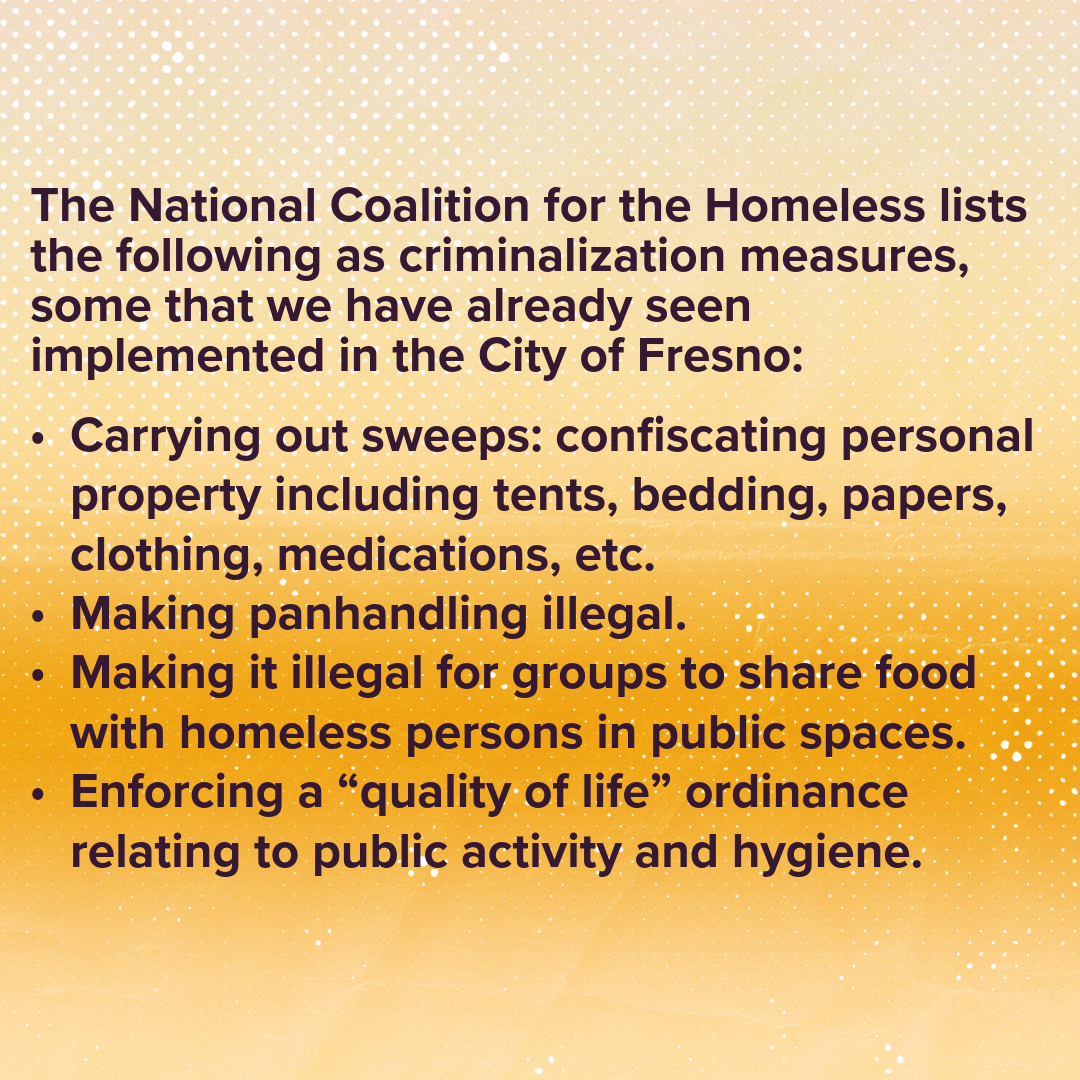 Sources: The National Coalition for the Homeless, Fresno Bee, KMPH FOX 26, Fresnoland, ABC30 Action News