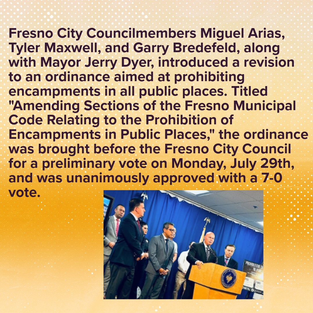 On Thursday August 15 Fresno City Council voted to approve the "no-sit-lie or sleep" ordinance.