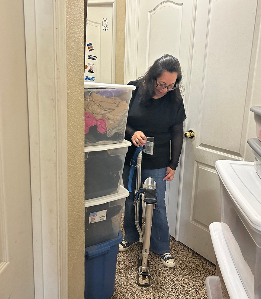A strange noise comes from the doorway of what once was Leticia Valencia’s garage, now converted into a home sewing studio. A closer look reveals Valencia’s son Leonardo blowing into a small ceramic feline figurine.