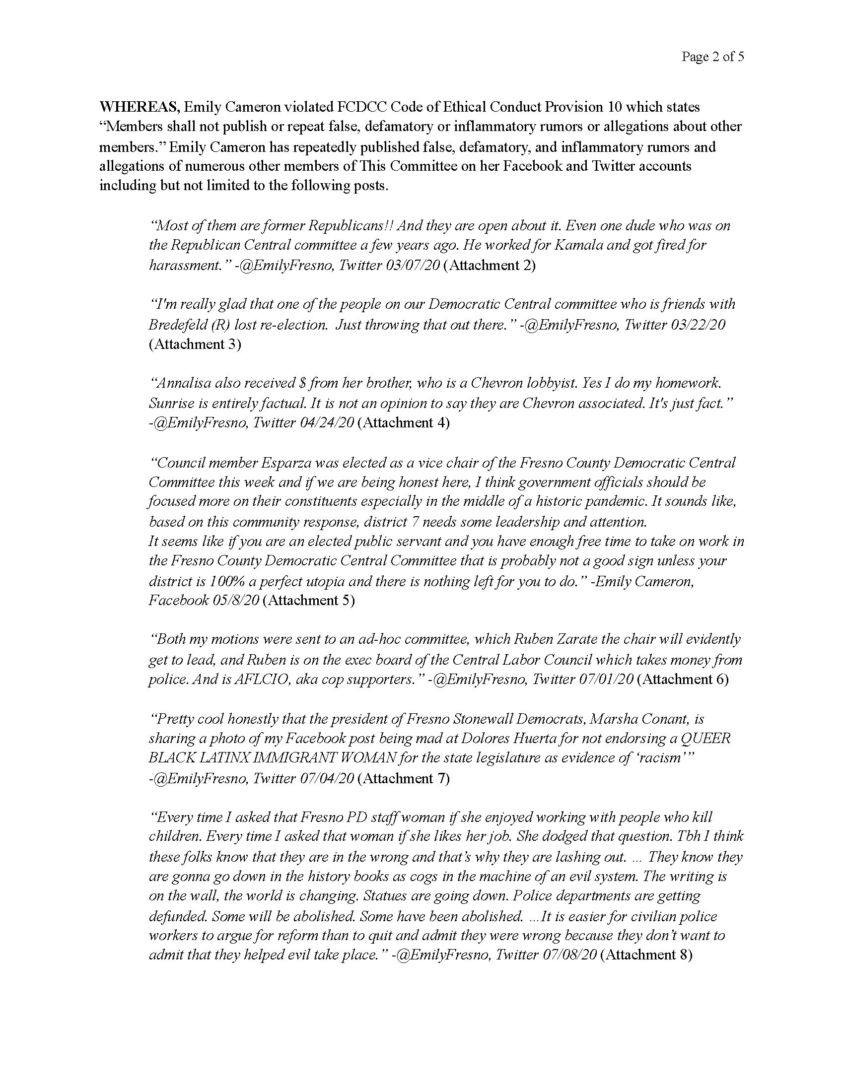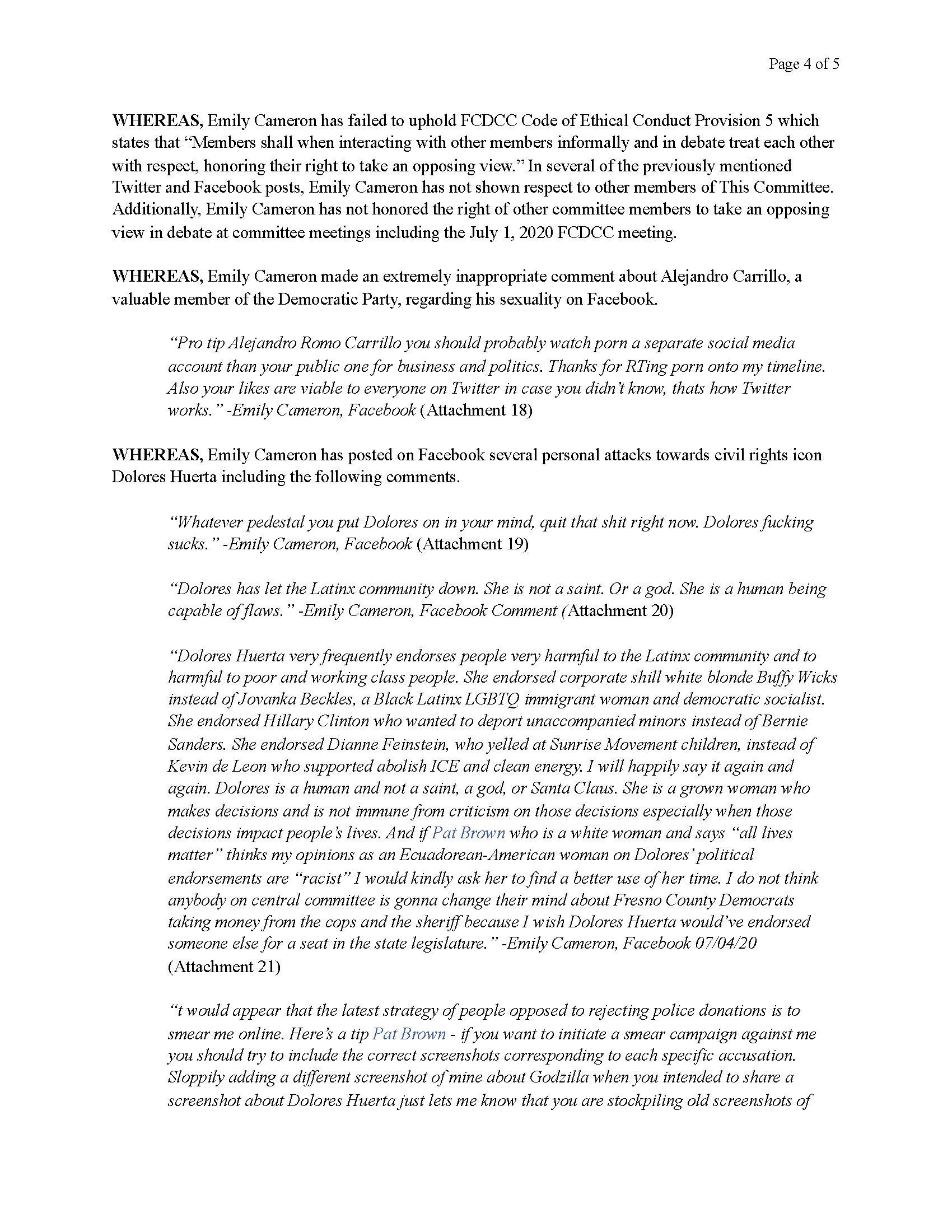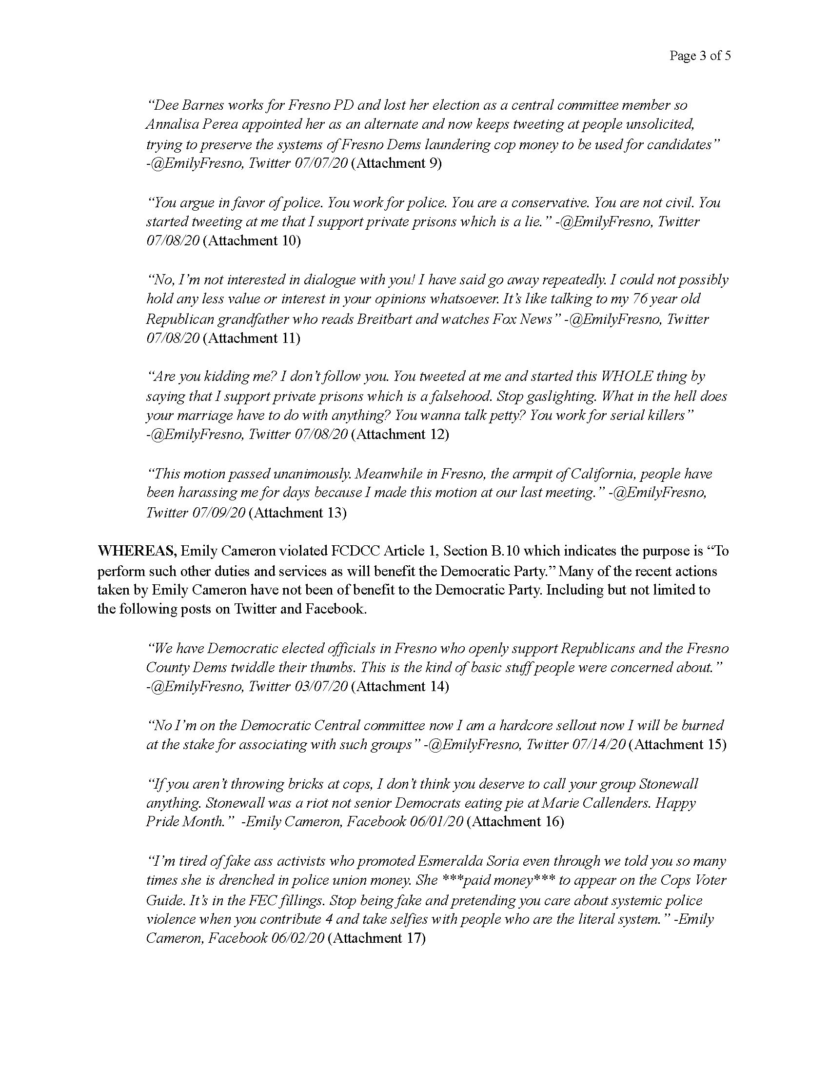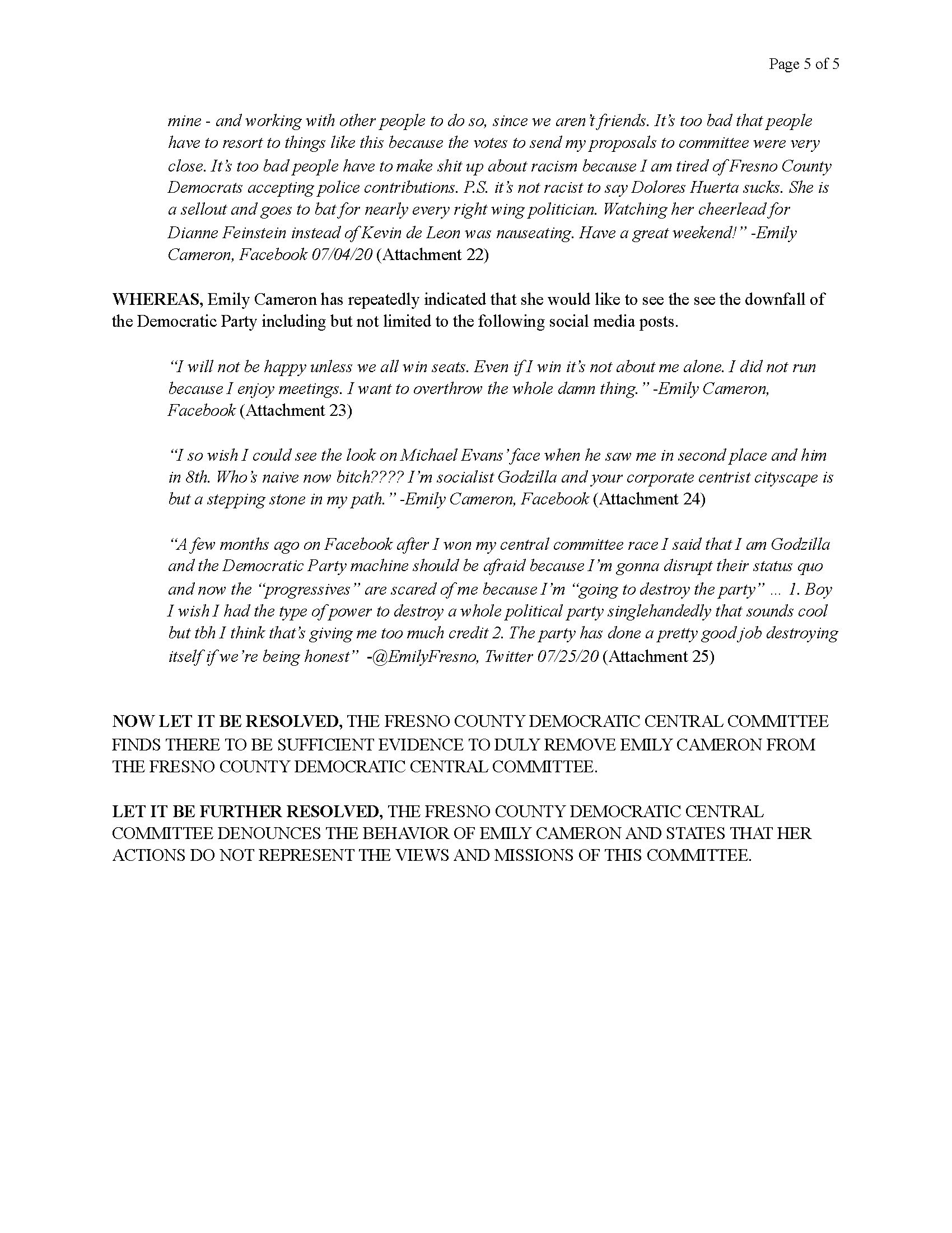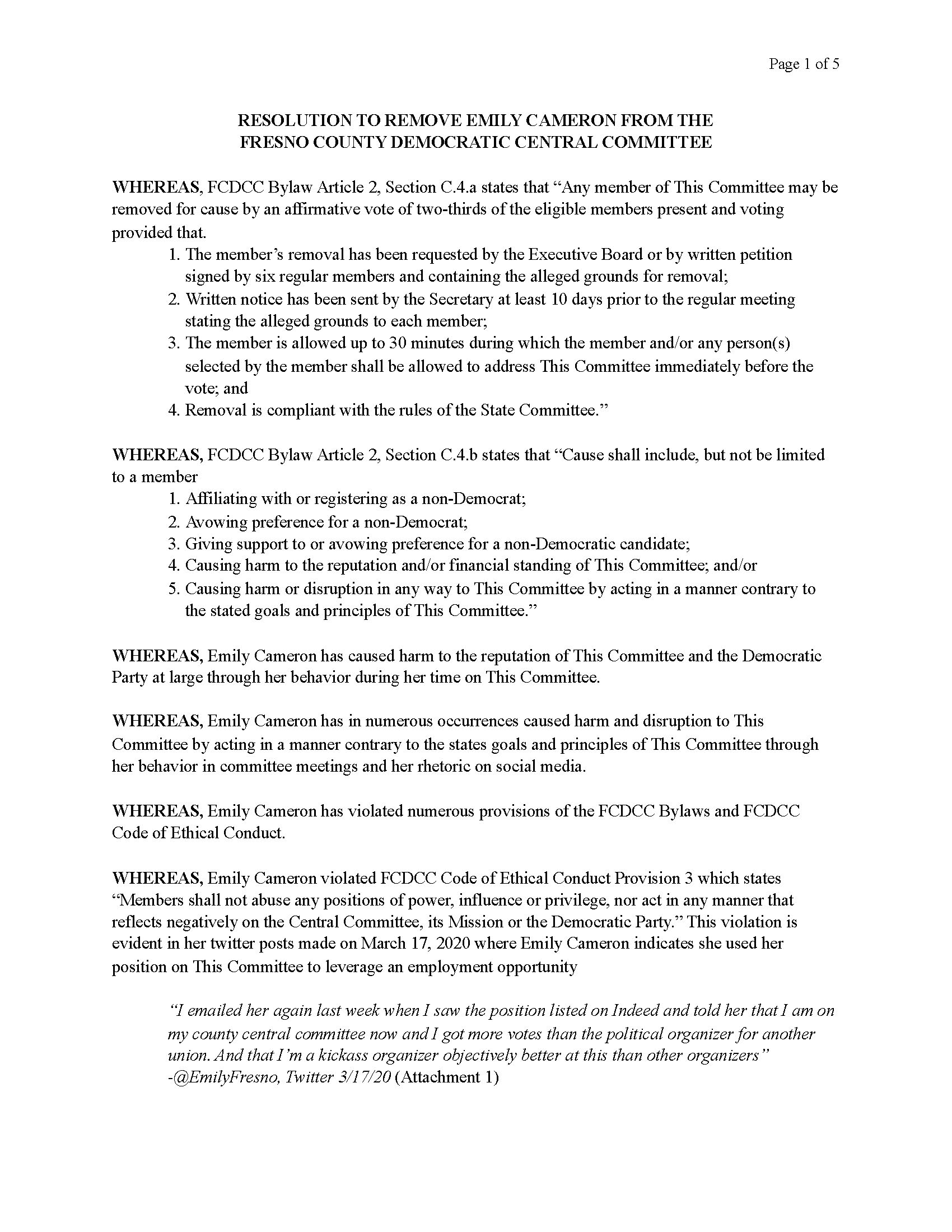 Resolution to Remove Emily Cameron From the Fresno County Democratic Central Committee