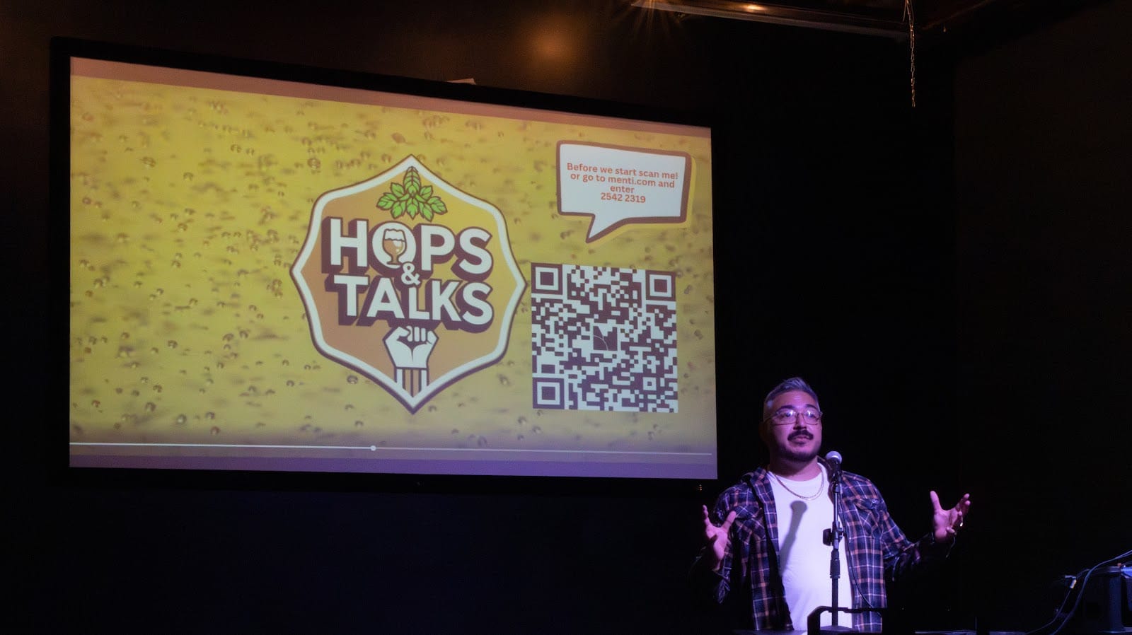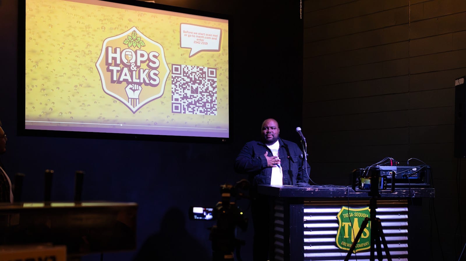 Attendees engaged in listening and discussion at Hops & Talks.