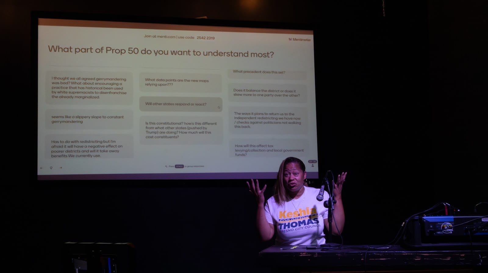“I just wanted to emphasize that Prop 50 is creating the space for potentially more left-leaning representation… It doesn’t change who your representatives are. You still have to vote for the right person,” said Ardemagni.