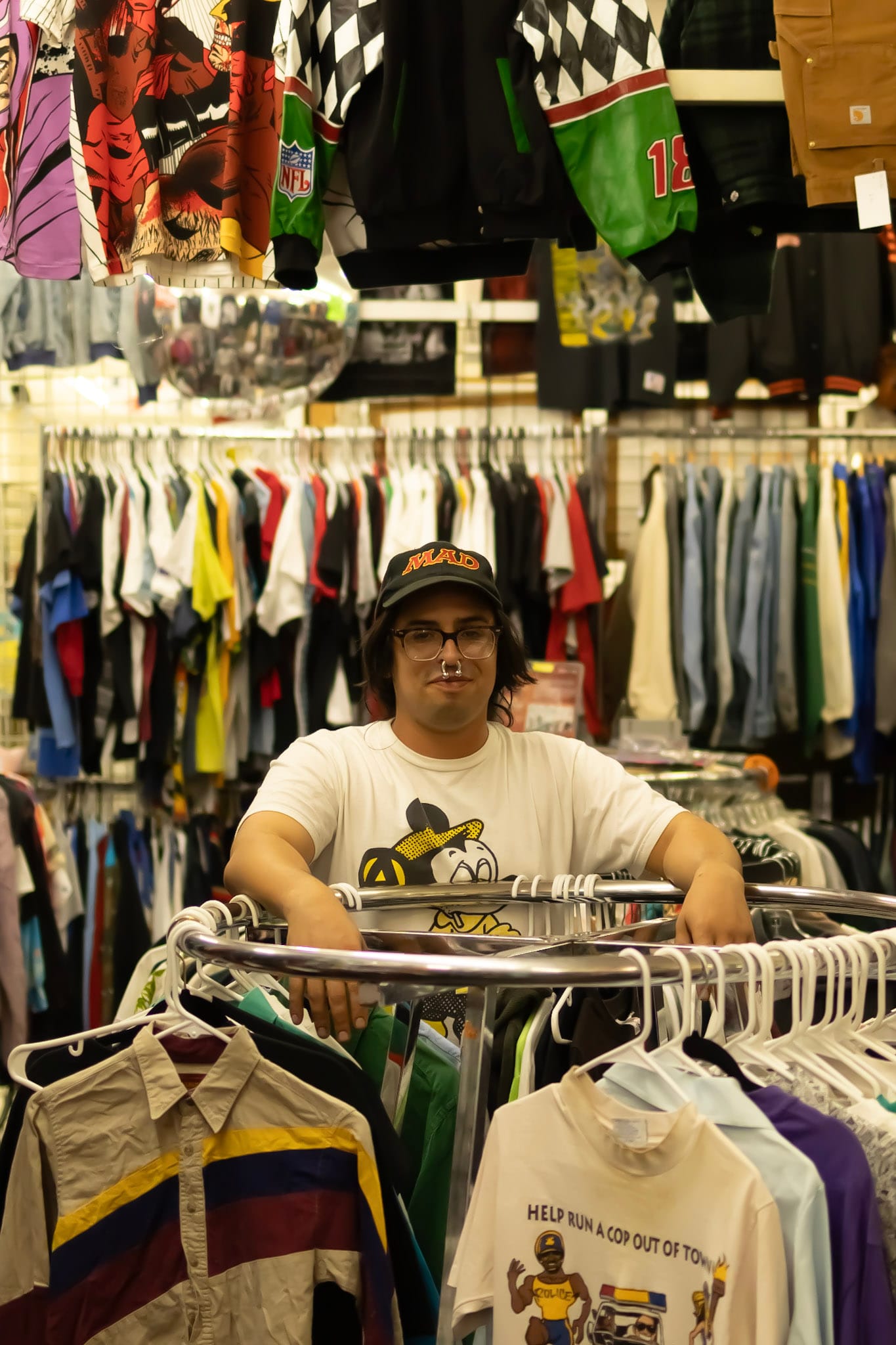 Fabio Linares stands at the center of Fresno's "worst vintage store" where you can find affordable, quality vintage. Photos by Mars Santos.