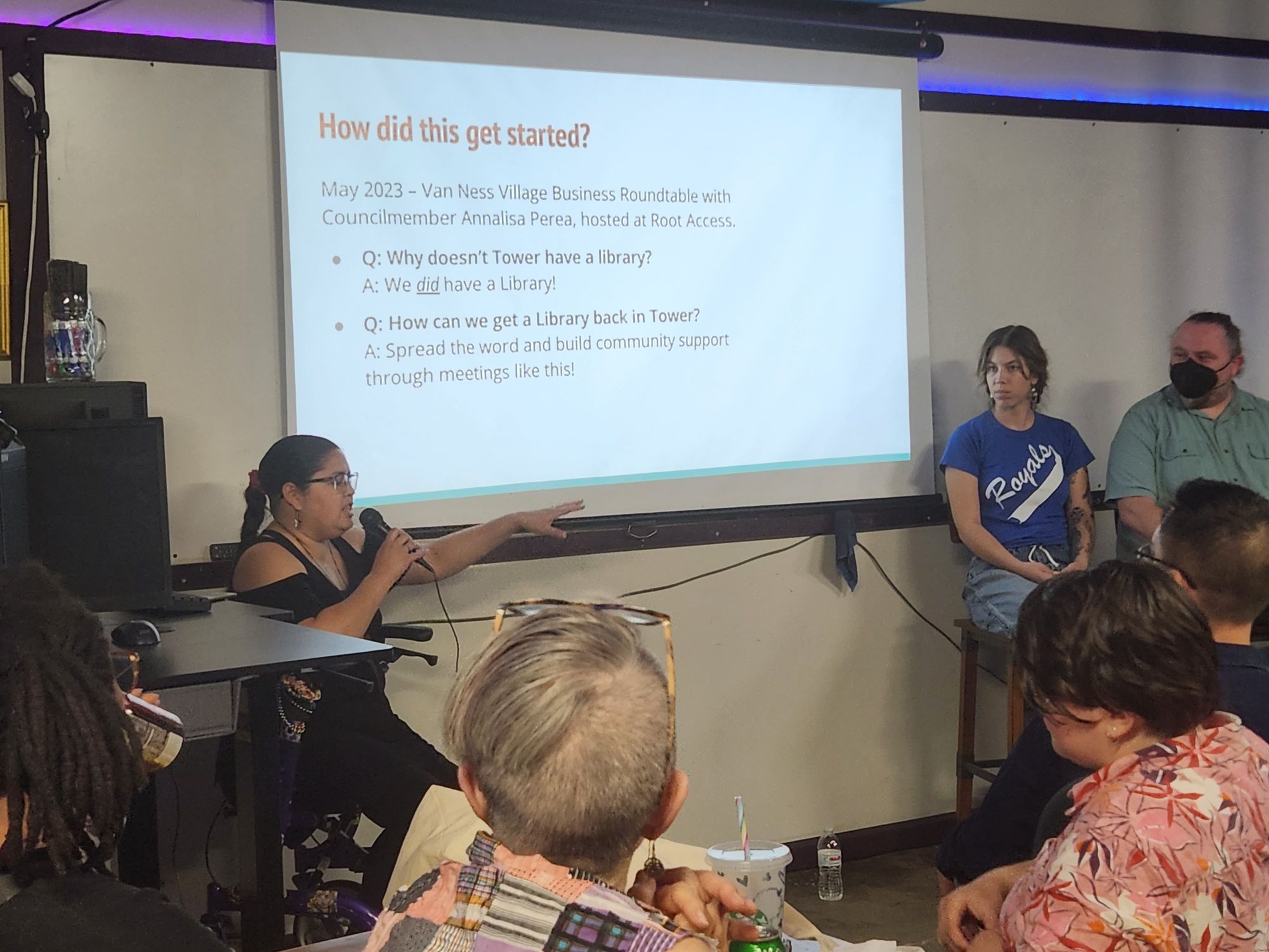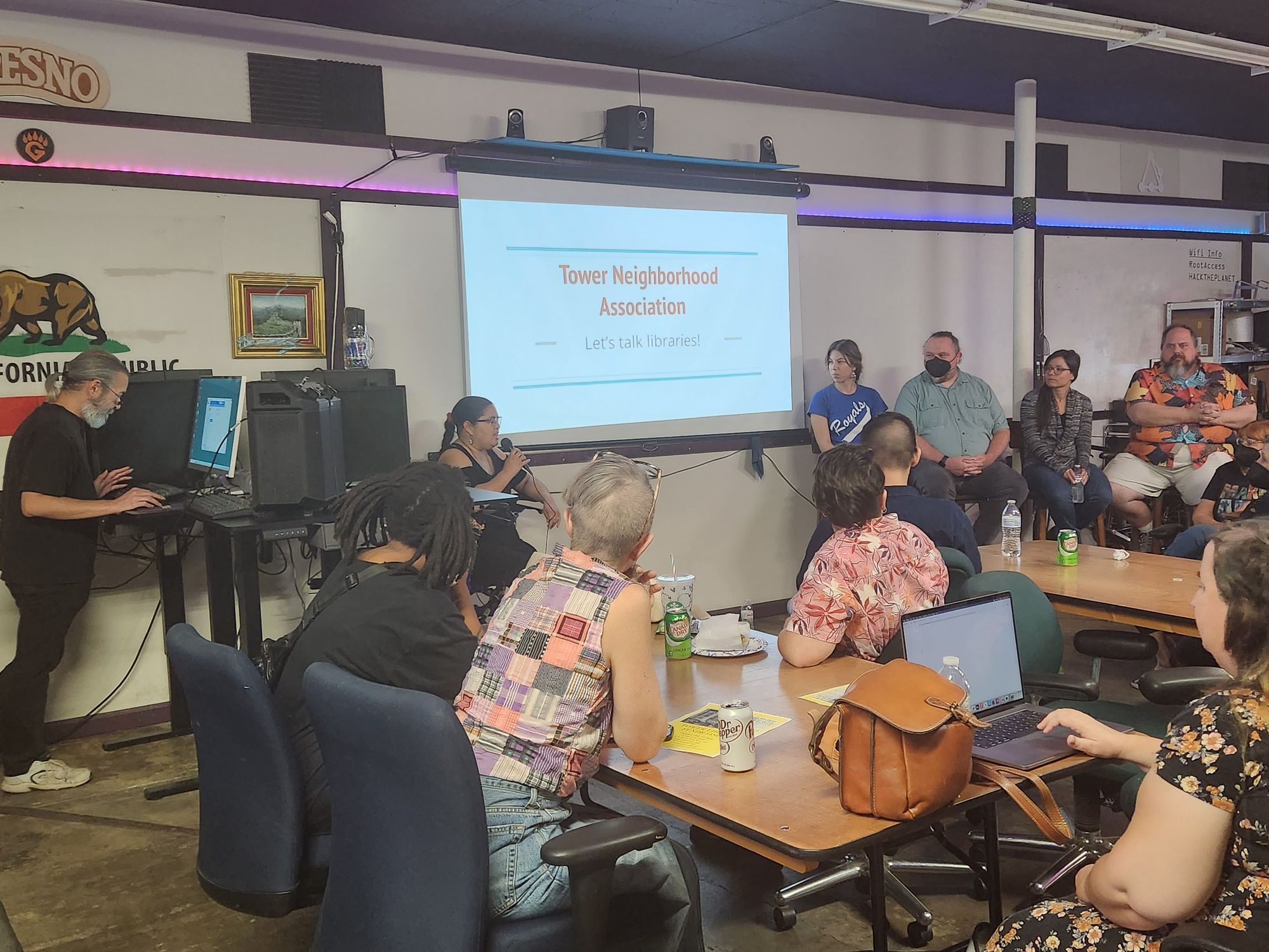 The petition was launched, the first community meeting was set, along with a book sale fundraiser to kick things off and let folks know how to get involved. On the evening of September 26th a community meeting at Root Access Hacker Space was held to inform and update supporters, led by Brooke Payton and The Tower Neighborhood Association, it included a panel of local advocates to provide perspective and a vision of what this effort will look like as it evolves.